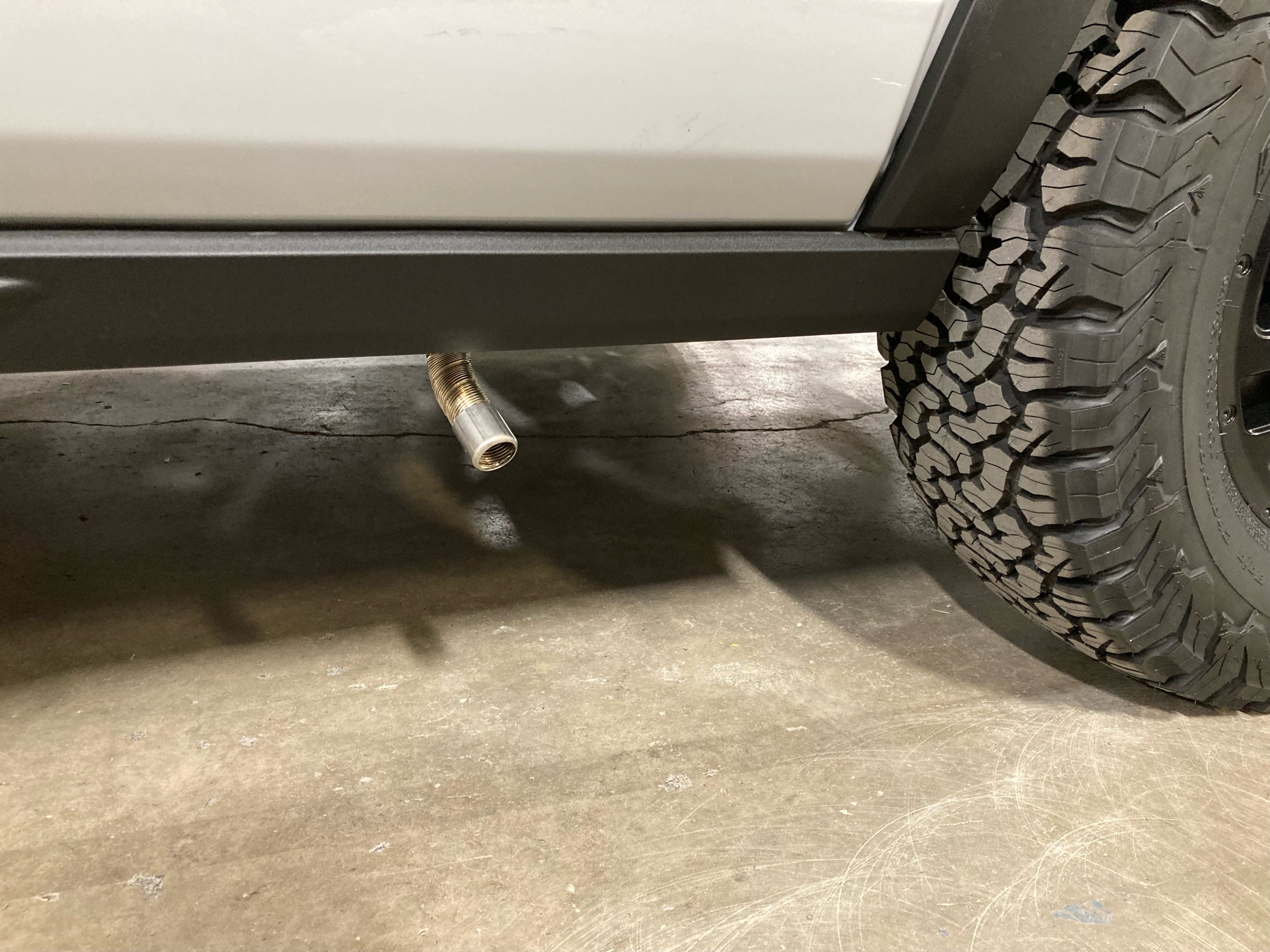 2. The Espar exhaust pipe runs under the van and exits on the driver's side of the van. Because of the exhaust pipe's position underneath the vehicle, it can move if the van is driven over rough terrain. It is helpful to periodically check the exhaust pipe's position and reposition it so that it is perpendicular to the van and pointing out from underneath the driver's side of the van.