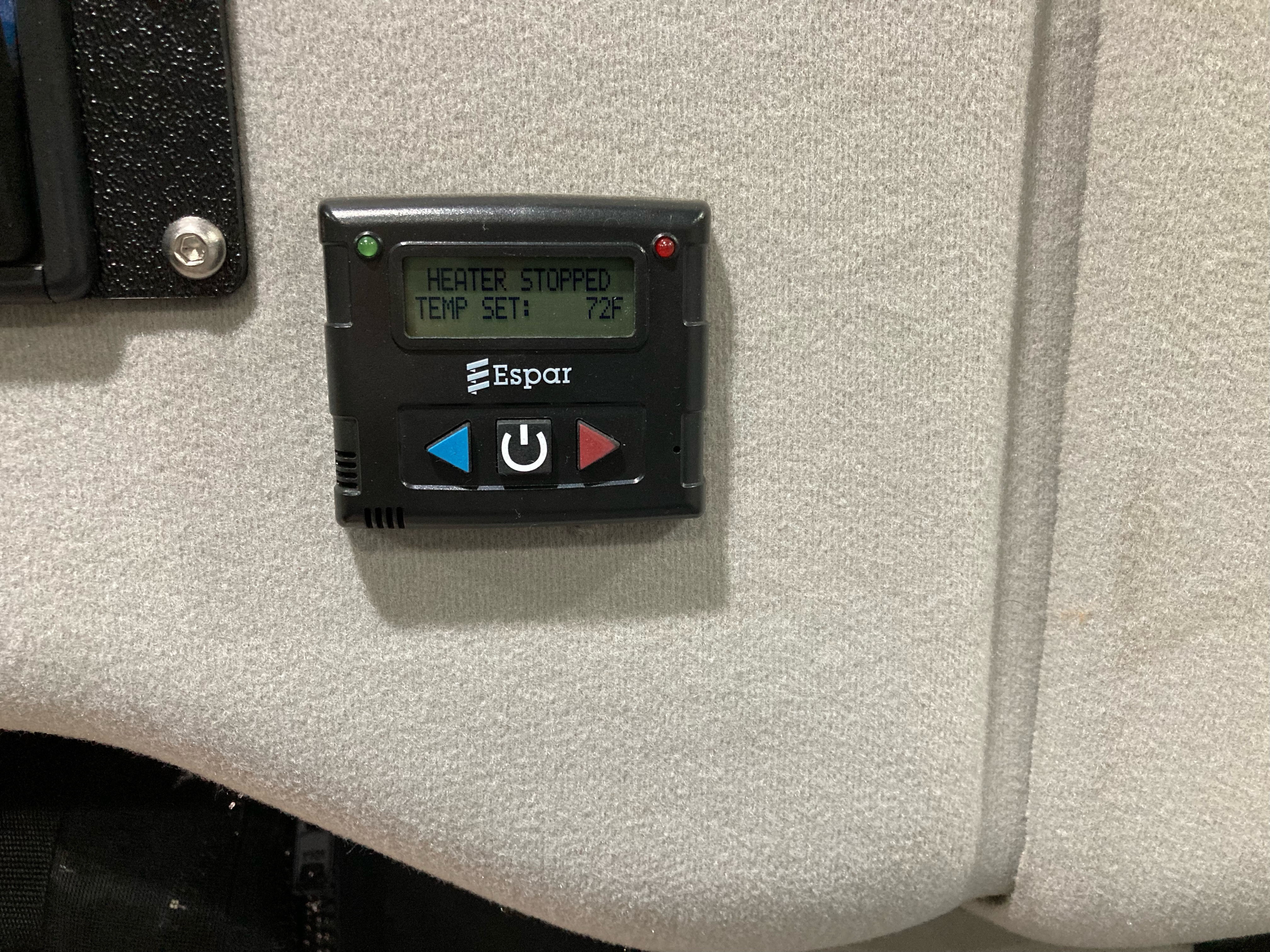 4. Much like a home furnace system, once the temperature in the van reaches the temperature set on the Espar thermostat, the Espar unit will stop running. It will resume running periodically to maintain the set temperature until it reaches the time limit (see #5).