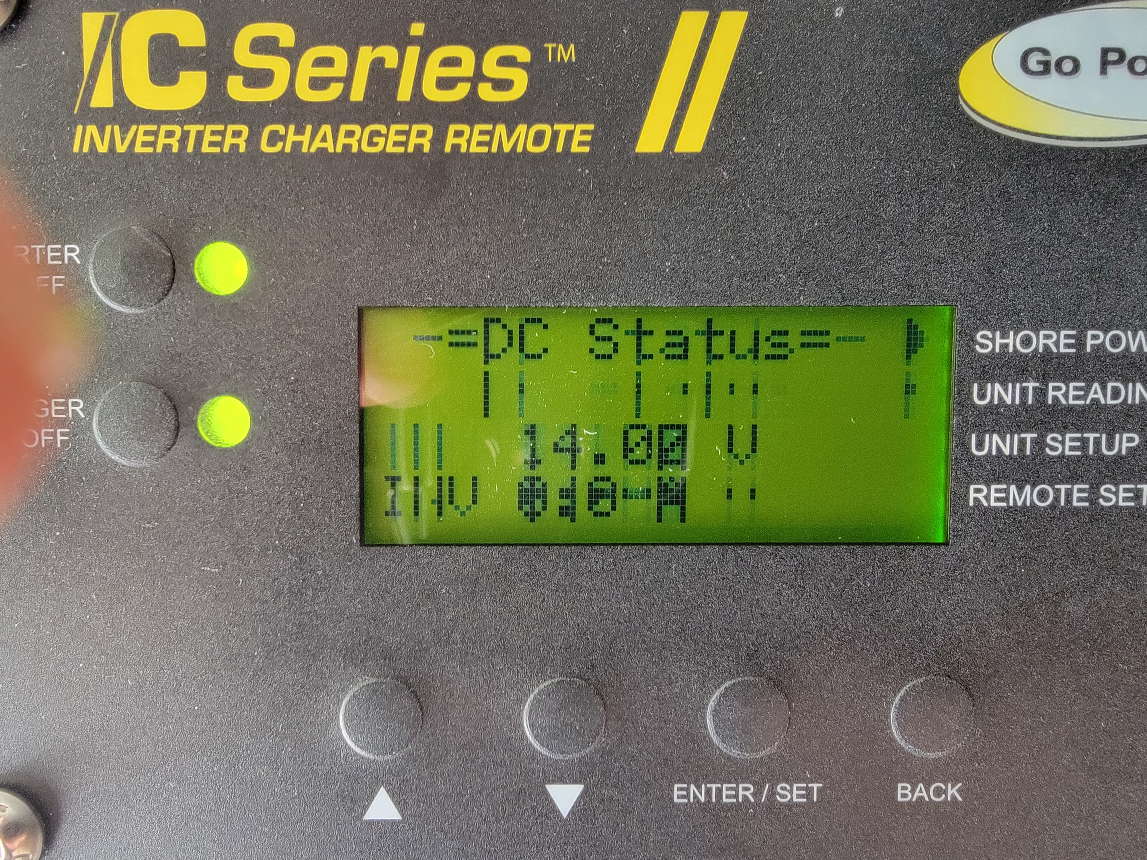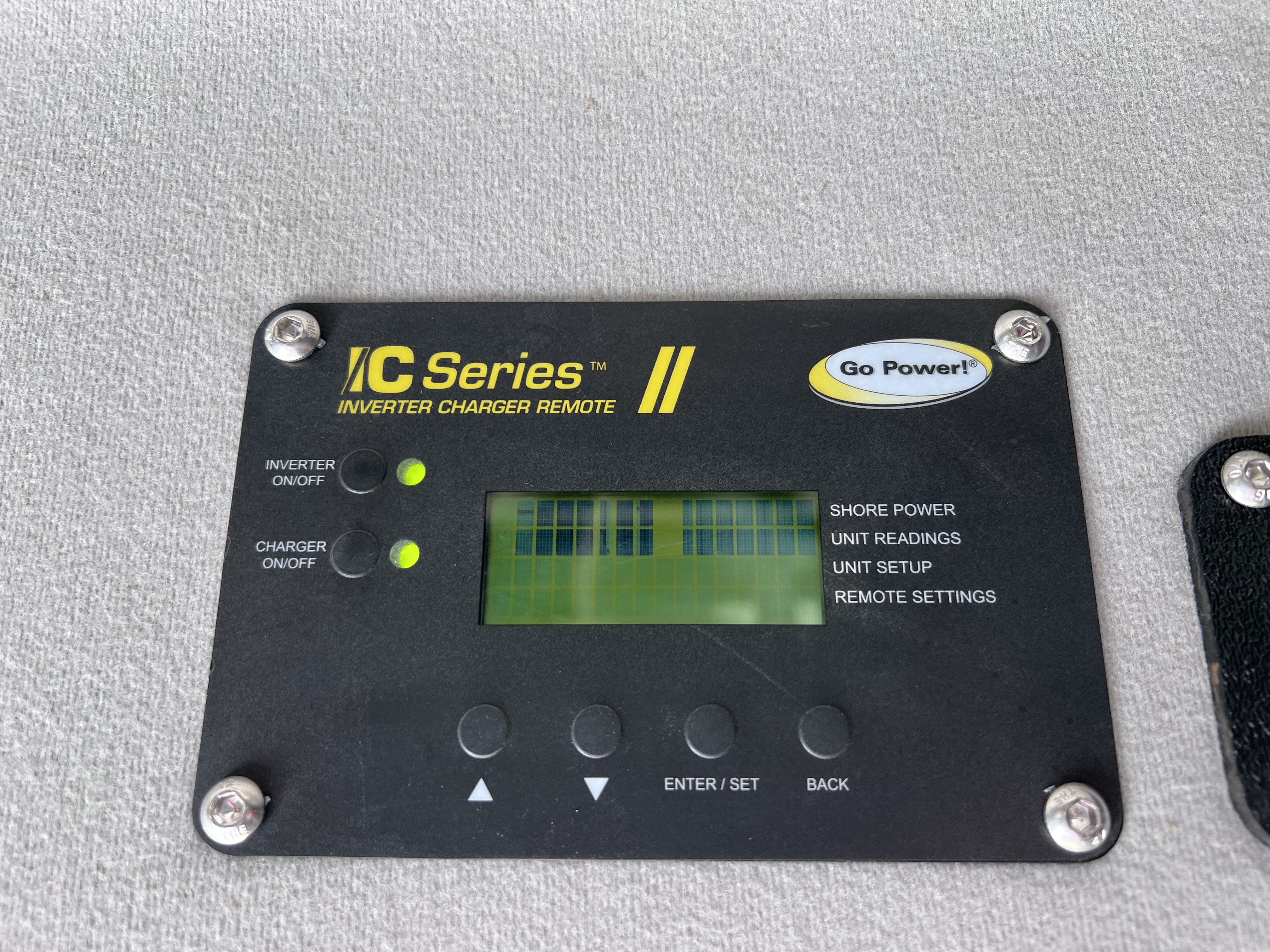 The GoPower Inverter Remote screen text is pixelated, not displaying properly, or difficult to read.