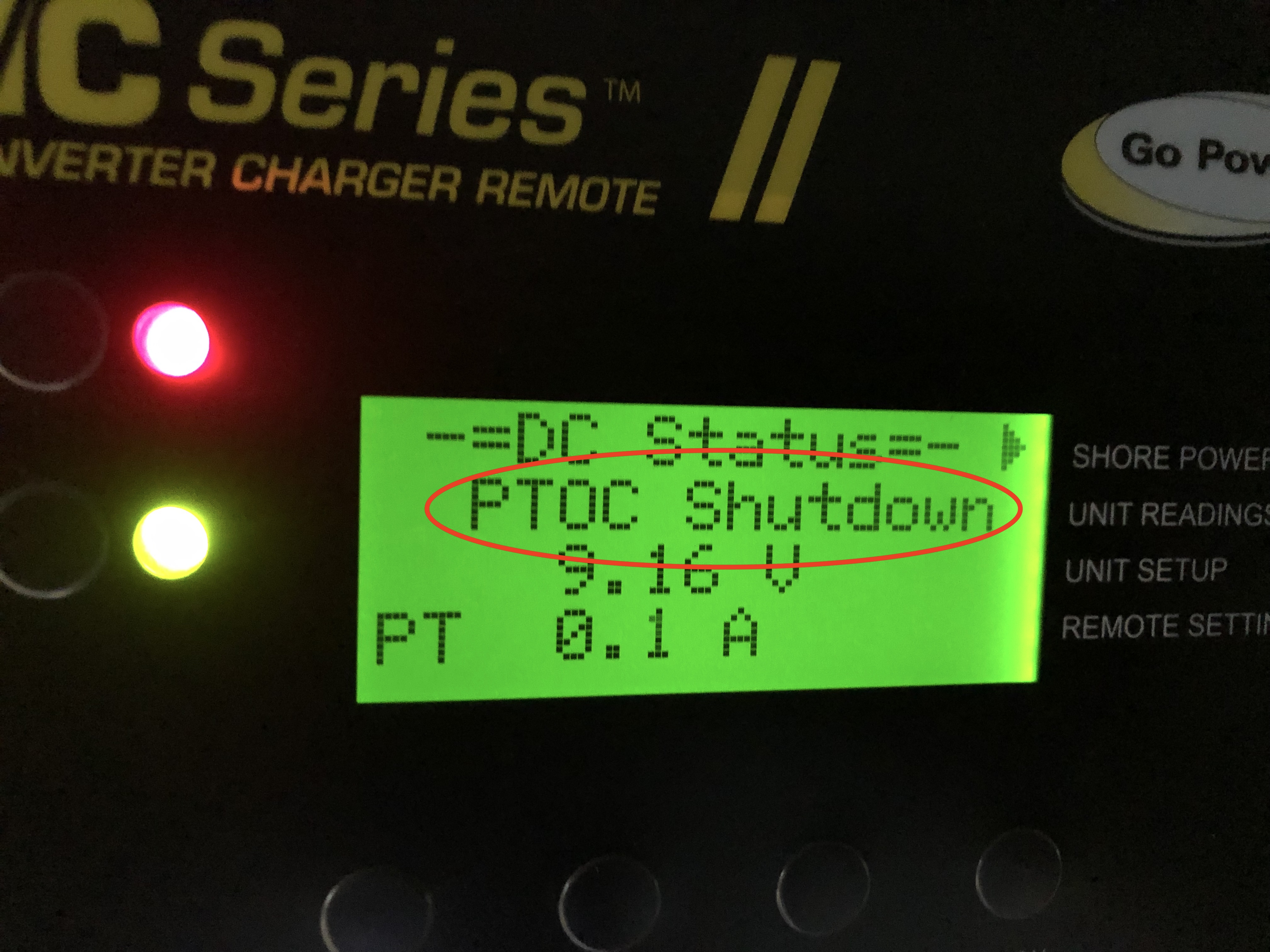 The PTOC error message indicates over current protection. The inverter equipped in Vandoit's AGM system has a 2000 watt inverting capacity. The error message typically occurs when trying to utilize more than 2000 watts in the van.