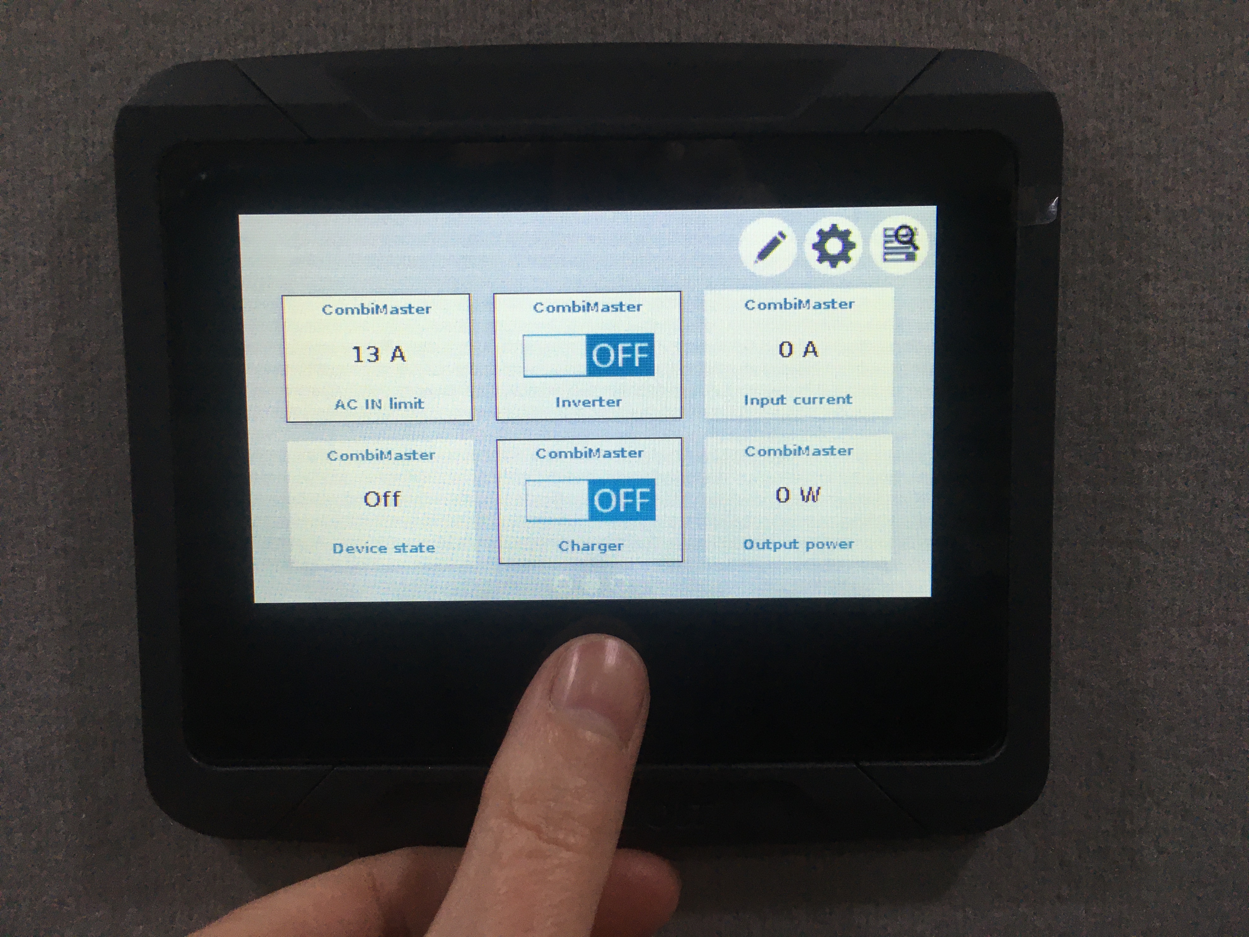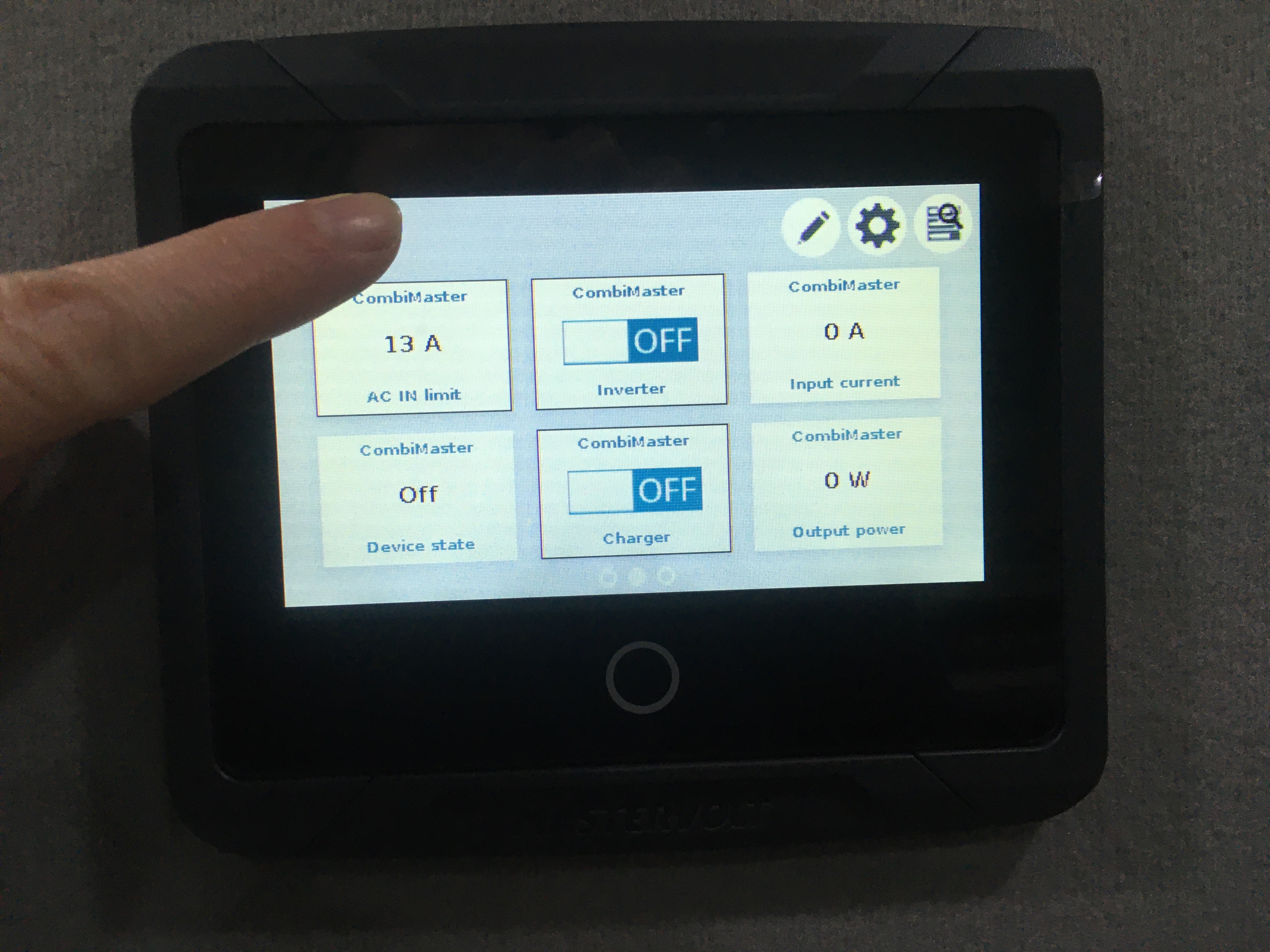 The Mastervolt inverter controller screen can stop working due to a couple of possible errors. Placing your thumb on the circle button does not wake it up. The inverter and electronics may or may not still be working.