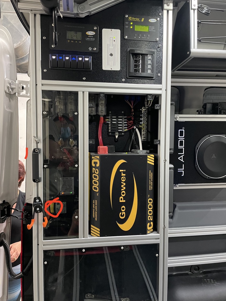 The Vandoit power system does not power anything: Outlets are not working. Lights are not turning on. Buttons do not work. Plugging into shore power and turning the vehicle on does not power or charge the van.