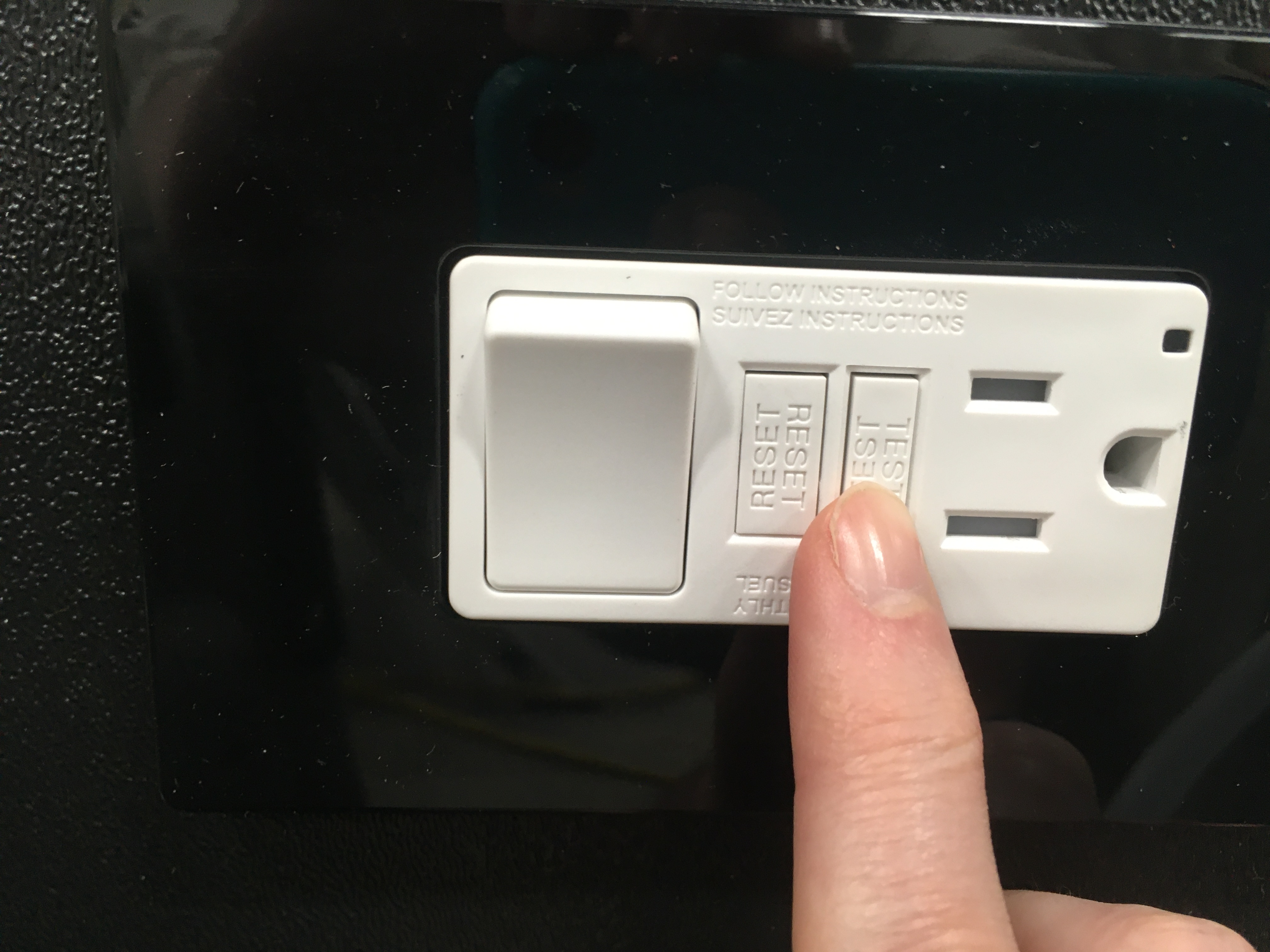 2. If the shore power extension cord is plugged into a GFCI outlet, unplug the cord and press the TEST and RESET buttons.