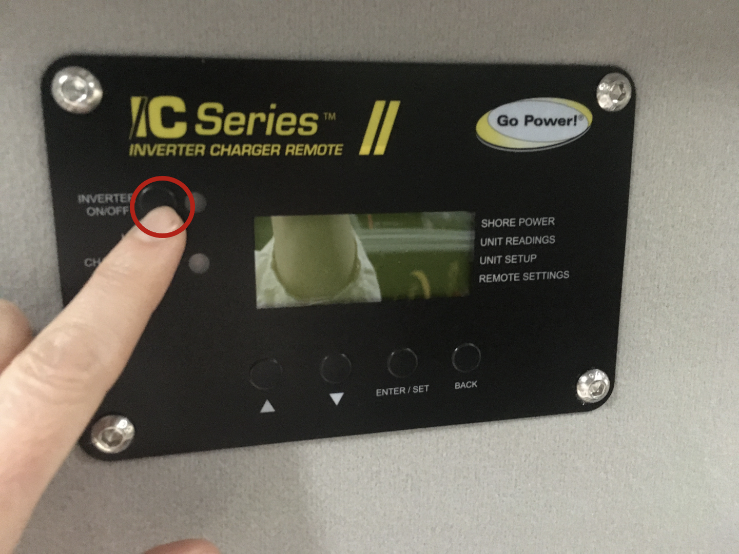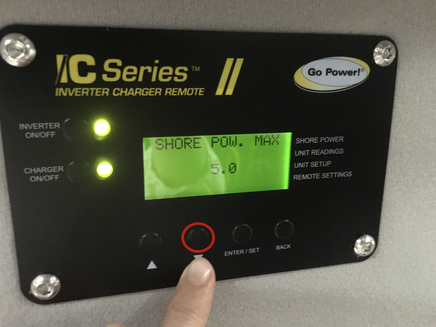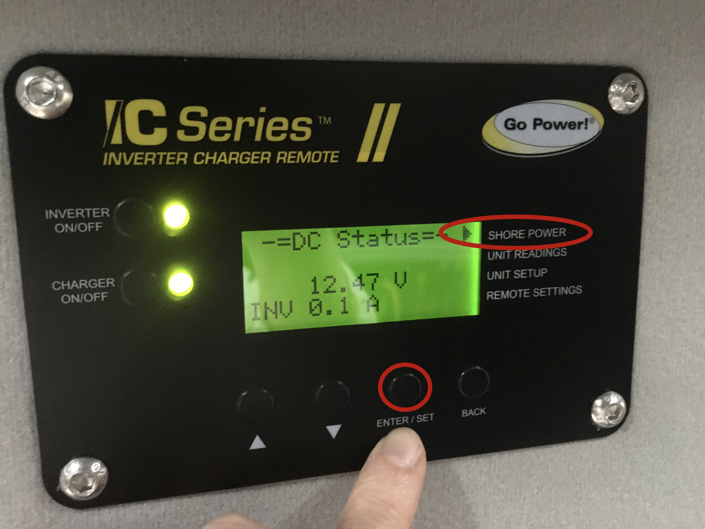 2. Make sure the small black arrow on the right side of the screen points to SHORE POWER and press the ENTER/SET button.