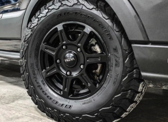 All terrain Rear Wheel Drive and All Wheel Drive tires were BF Goodrich All Terrain T/A KO2 LT245/75 R16 (discontinued on new vans as of Quarter 1 2024):