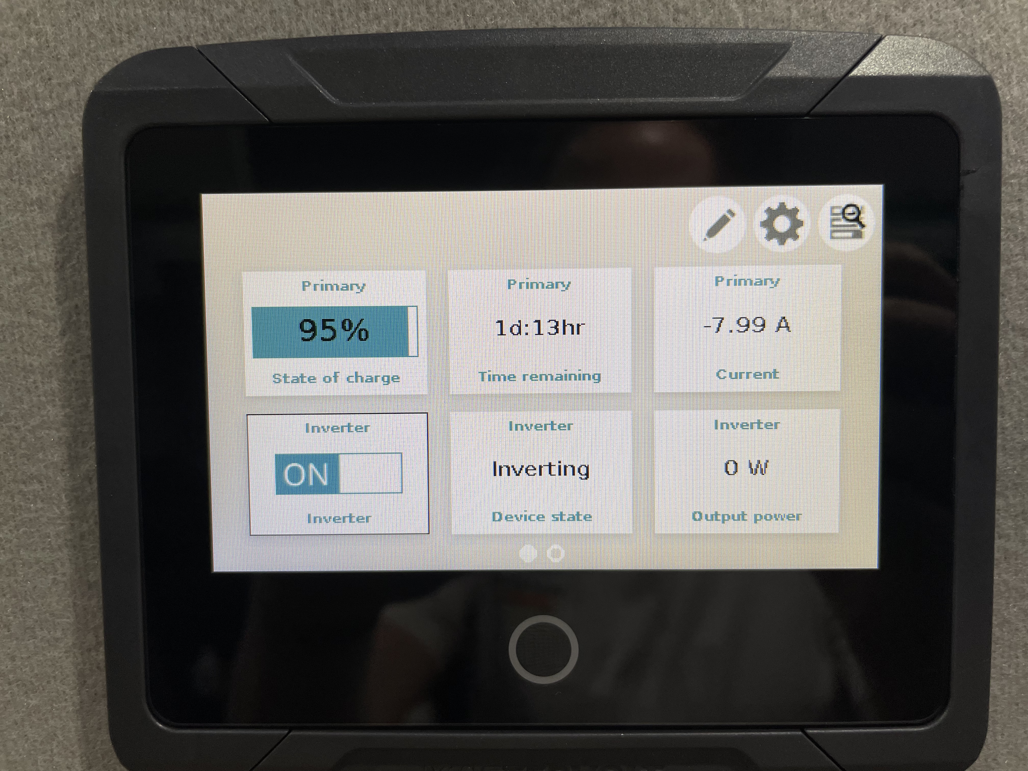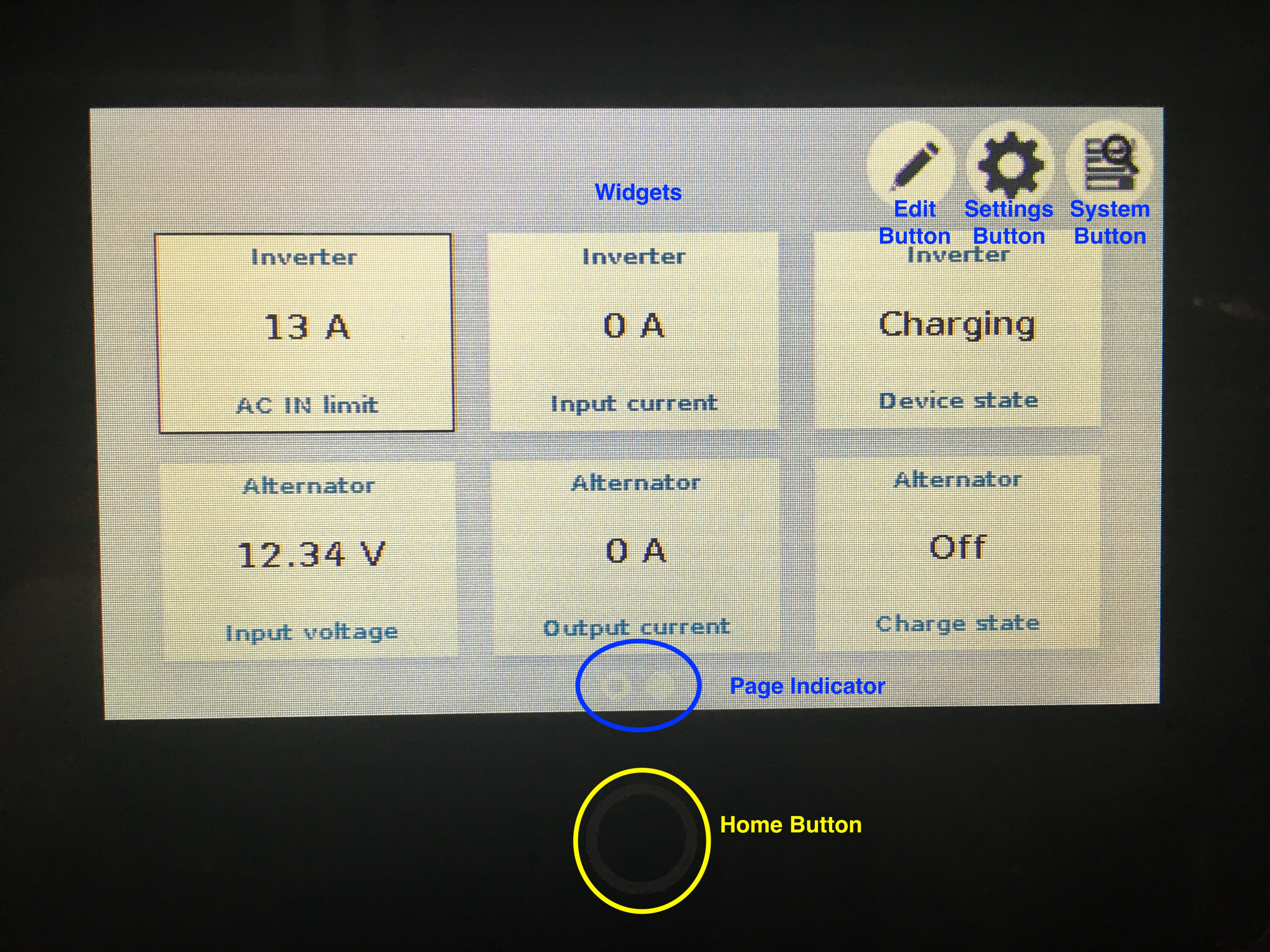 8. Inverter input current: Displays how much amperage is actually coming in, depending on how full the battery system currently is.